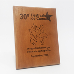 Galvano de reconocimiento pequeño, de madera Raulí, personalizable.