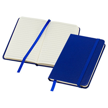 Libreta tipo "Colorskine" tamaño A6, con cubierta de cartón piedra forrada en PU (cuero sintético) de color de 1.5mm de espesor. Interior 80 hojas lineadas amarillas de 80gsm. Incluye banda elástica y huincha separadora.