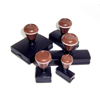 Timbres con tinta incluida de larga duración, de muy fácil recarga.